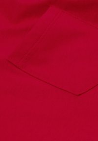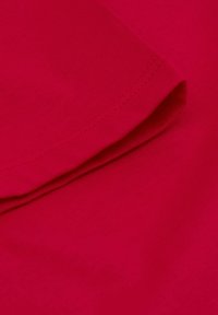 T-shirt rouge à manches courtes avec col rond, petite poche poitrine et design uni, présenté sur un fond blanc.