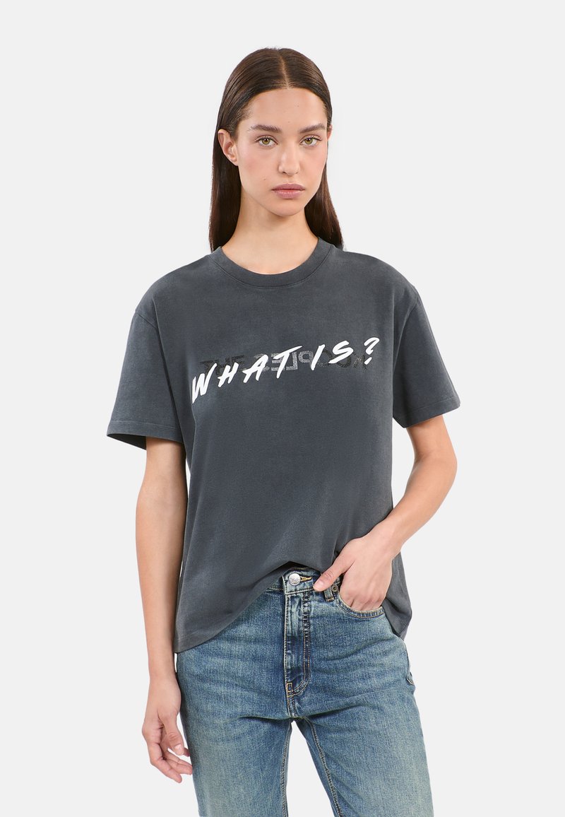 WHAT IS MANCHES COURTES - T-shirt imprimé - black washed