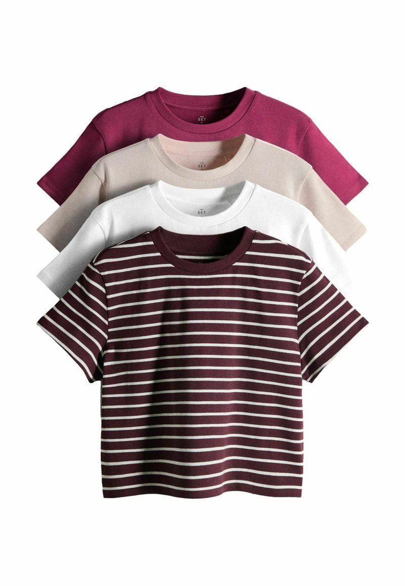 REGULAR FIT - 4 PACK HEAVYWEIGHT CROPPED T-SHIRTS . - T-shirt basique - pink white stripe