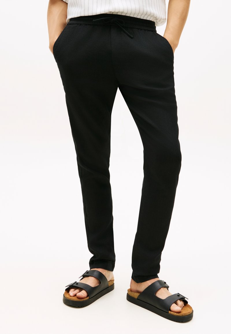 Ce modèle en lin mélangé à coupe fuselée intègre des fibres Sorona® haute performance, offrant une alternative haut de gamme et agréable au toucher au style chino classique.Caractéristiques • Mélange de lin Sorona® • Fermeture à glissière et boutons • Deux poches en biais à la taille • Deux poches arrière fendues boutonnées • Ceinture semi-élastiquée • Bande signature sur la hanche • Logo Tommy Hilfiger • Broderie du drapeau Tommy Hilfiger dans le dos Forme et coupe • Jambe fuselée Composition et entretien • 71 % lin, 29 % polyester