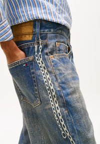 Retombez dans la nostalgie des années 90 avec Jaimie, un jean ample, à la silhouette décontractée et à l'entrejambe légèrement plus long pour un look décontracté et relax. Le denim selvedge apporte une touche haut de gamme à ce jean droit à la coupe décontractée, imprimé de chaînes et de breloques pour un look d'inspiration rétro.Caractéristiques • Denim selvedge • Fermeture à glissière et bouton • Cinq poches • Imprimé chaîne et breloque sur le devant • Effets délavés et froissés à l'avant et à l'arrière • Ourlets retroussés • Logo Tommy Jeans • Broderie Tommy sur les poches avant et arrière Forme et coupe • Coupe décontractée • Jambe droite Composition et entretien • 92 % coton, 8 % polyester • Denim 10,3 oz