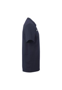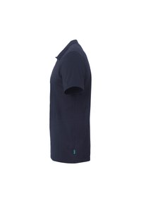 Polo bleu marine à manches courtes avec col, trois boutons et logo blanc "uhlsport" sur le côté gauche de la poitrine.