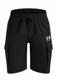 Shorts de sport bleu marine en tissu léger, dotés d'une ceinture élastique, d'un cordon de serrage et de poches cargo latérales.