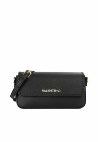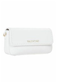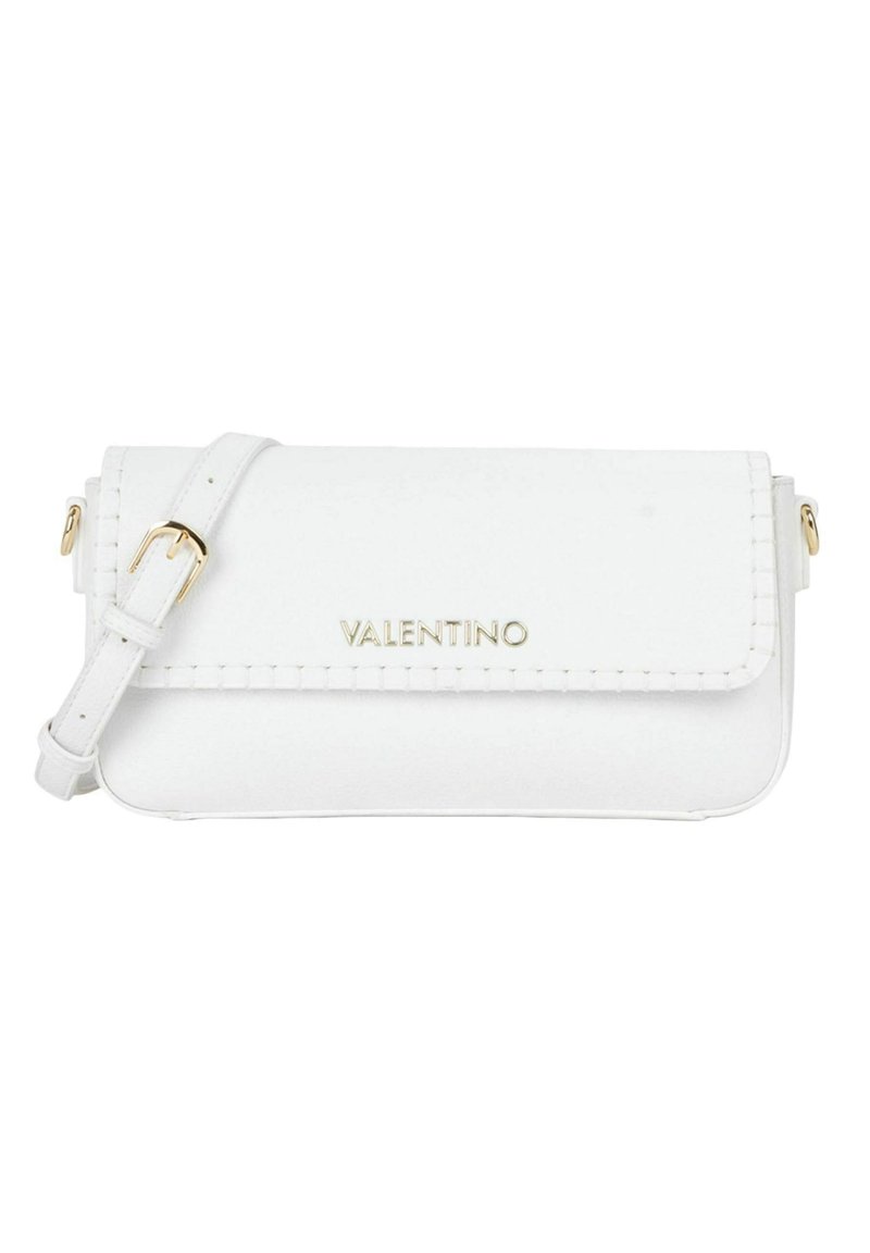 Sac bandoulière en cuir blanc Valentino avec boucle dorée, bords cousus et logo sur le rabat avant.