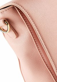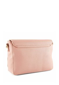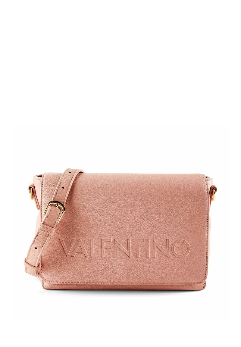 Sac bandoulière Valentino en cuir rose blush avec sangle réglable et logo embossé sur le rabat avant.