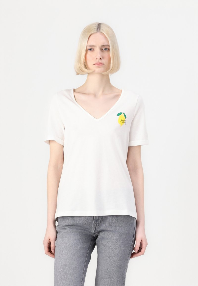 VMBITONA V-NECK - T-shirt imprimé - snow white