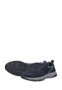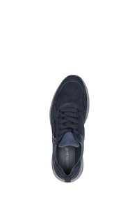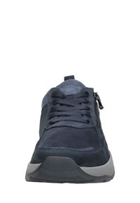 Baskets bleu marine pour homme avec fermeture éclair latérale, laçage devant, semelle grise rembourrée et languette arrière.