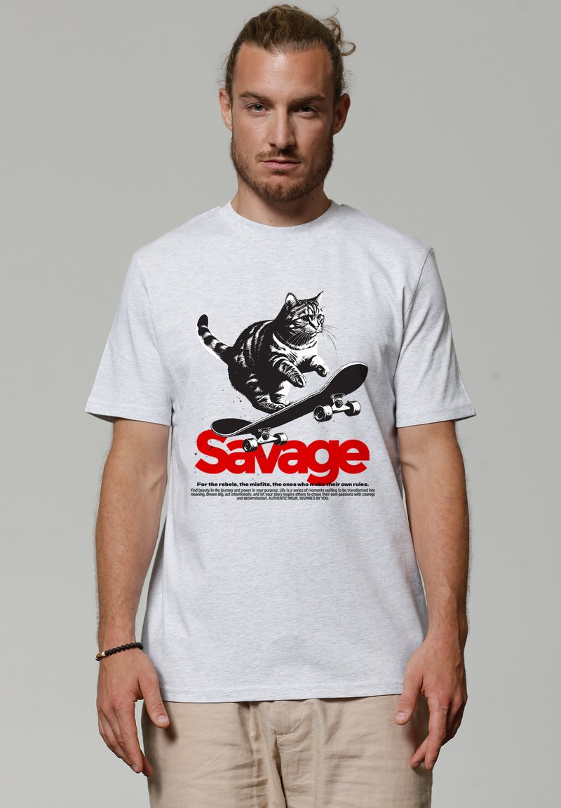 SAVAGE CAT - T-shirt imprimé - cool heather grey
