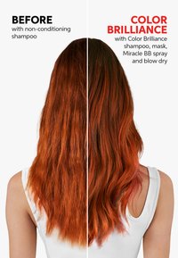 Une fois par semaine, appliquez sur cheveux propres et humides. Laissez poser 5 minutes, puis rincez abondamment. Pour de meilleurs résultats, utilisez avec le shampooing et l’après-shampooing Color Brilliance dans le cadre de votre routine.