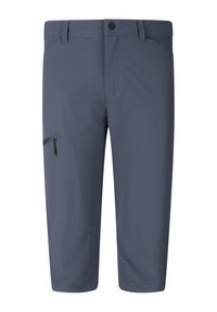 Shorts cargo de longueur genou en tissu vert olive, avec une poche zippée sur la jambe gauche et une coupe droite légèrement brillante.